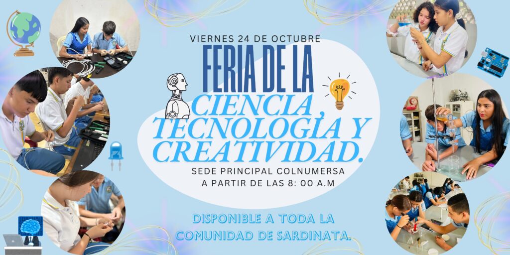 Vuelve la feria de la ciencia, tecnología, emprendimiento y creatividad, este viernes 24 de octubre, donde la Institución Educativa Nuestra Señora de las Mercedes se llenará de innovación, ingenio y talento. Un evento que reúne lo mejor del pensamiento de los niños y jóvenes, el espíritu emprendedor y la creatividad de nuestros estudiantes.